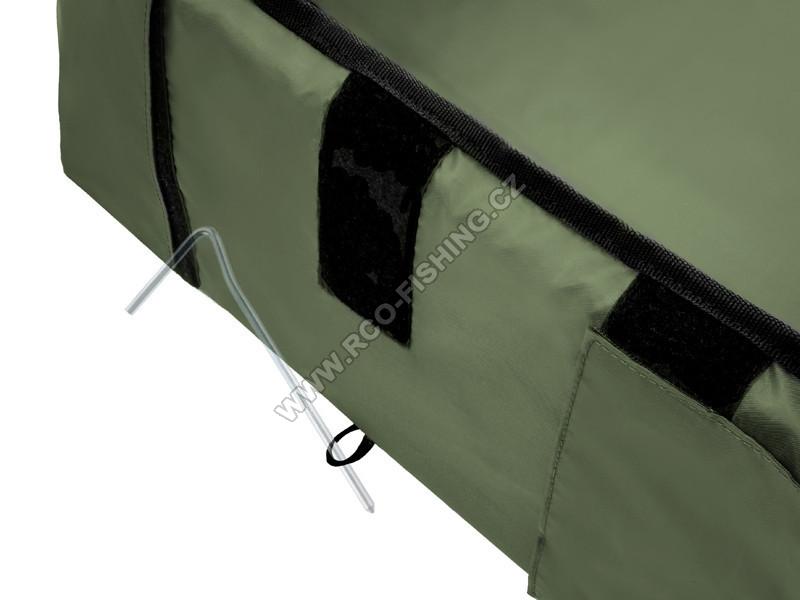 Polstrování z 30 mm silné a pevné pěny se postará o spolehlivou ochranu vašich úlovků. Okraje vyvýšené až do výšky 20 cm zaručí, že ryba z podložky nevyklouzne ani při nerovném terénu a vrchní překrývací část opatřena suchými zipy spolehlivě zamezí případnému vyskočení úlovku. Materiál použitý při výrobě je rychleschnoucí, odolný a v případě zašpinění ho lze jednoduše očistit.