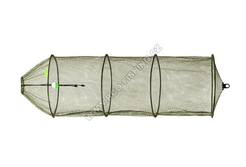 Pogumovaná síťka Delphin BASE-R v základním provedení, která je spolehlivým doplňkem mnoha rybářů. Její předností oproti klasické síťce je její rychlé schnutí, nezapáchá a je šetrná k úlovku. Slouží k bezpečnému přechovávání úlovků ve vodě. Díky očkům je zachováno proudění čerstvé vody v síťce, a tím pádem ponechání úlovku bez nežádoucího poškození. Samozřejmostí je plovák nacházející se na šňůrkách vrchní stahovací části. Spodní část je samozřejmě vybavena plastovým okem. Síťka je nabízena ve třech provedeních: 35x80, 40x100 a 40x120, kde první číslo zobrazuje průměr jednotlivých kruhů a druhé celkovou délku v centimetrech.